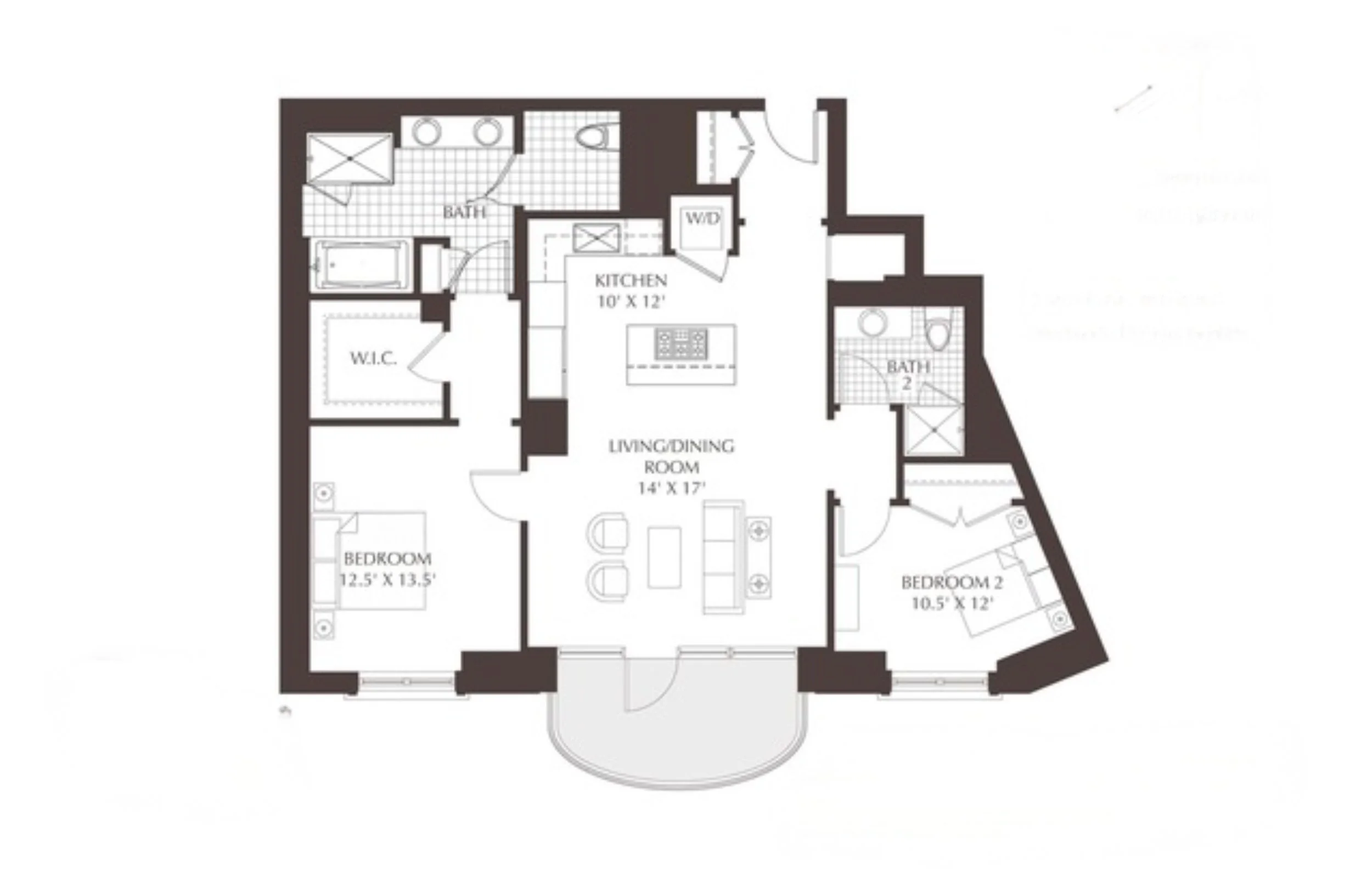 This 2 bedroom 2 bath split floor plan offers quiet separation
