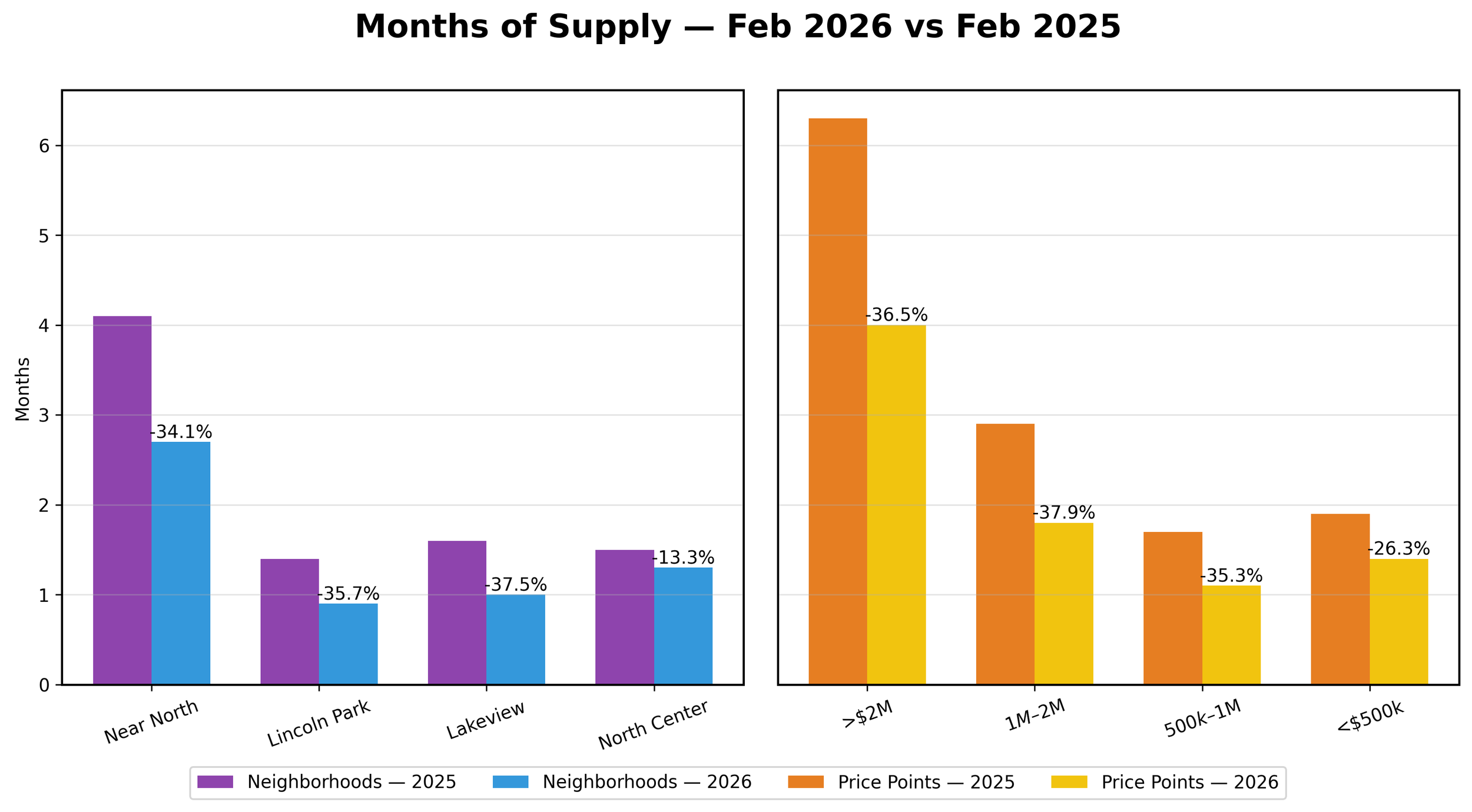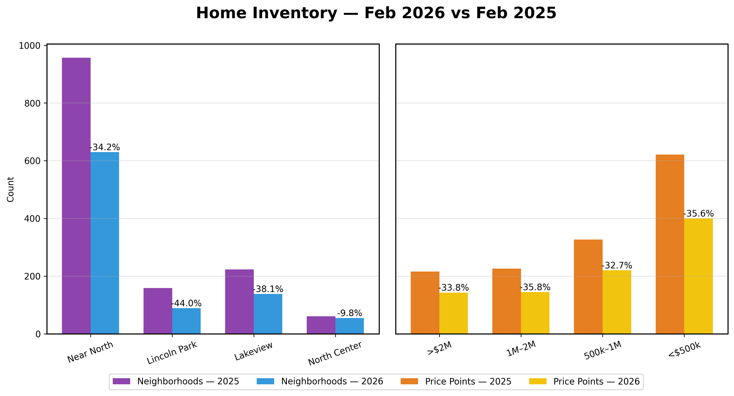 Inventory contracted sharply across nearly every segment, particularly in Lincoln Park and mid-market price tiers.
