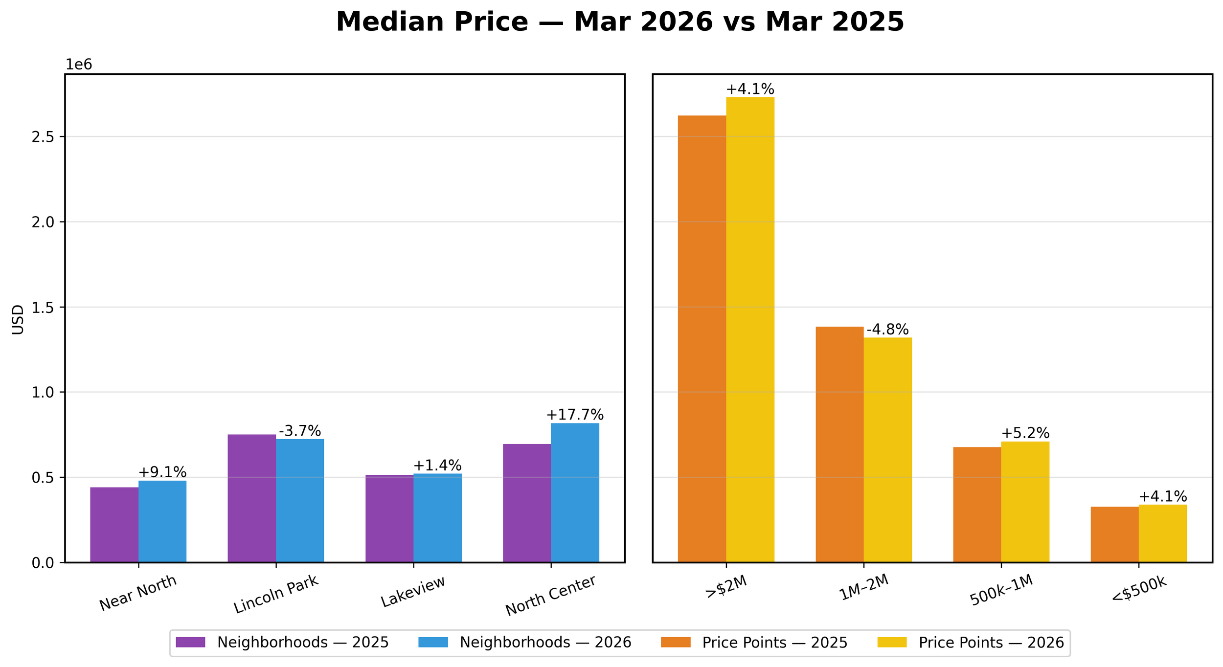 Prices rose modestly overall, with strong gains in North Center offsetting softness in Lincoln Park.