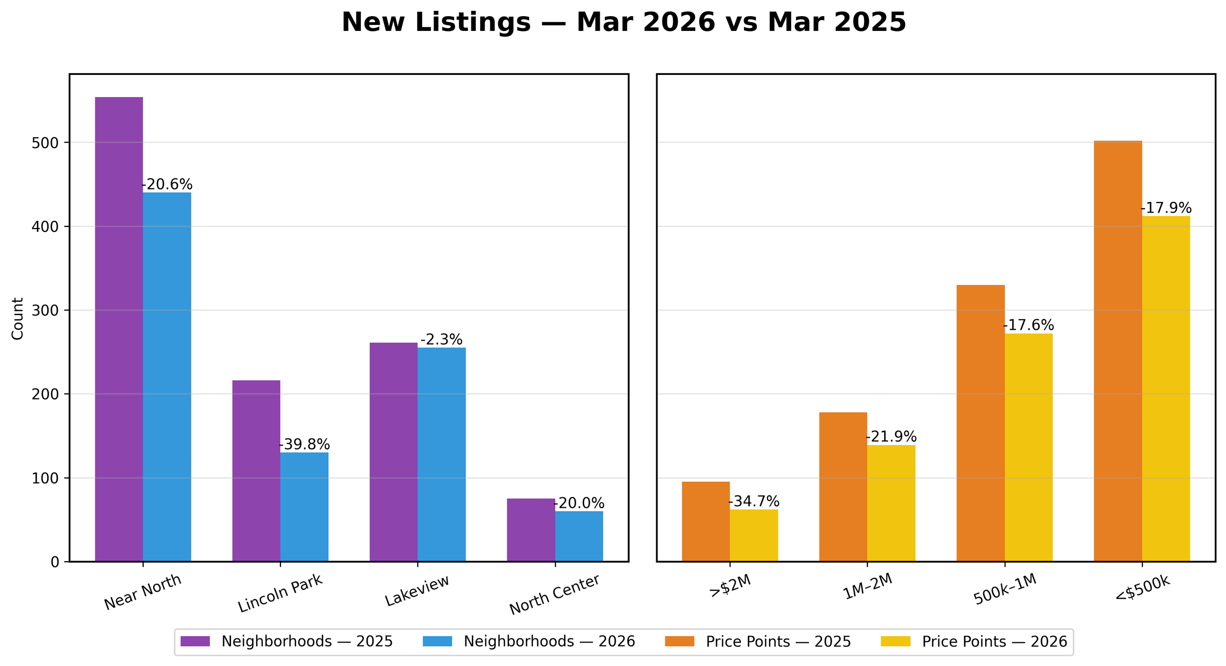 Listing activity remains weak, particularly in Lincoln Park and higher price tiers, further tightening supply.